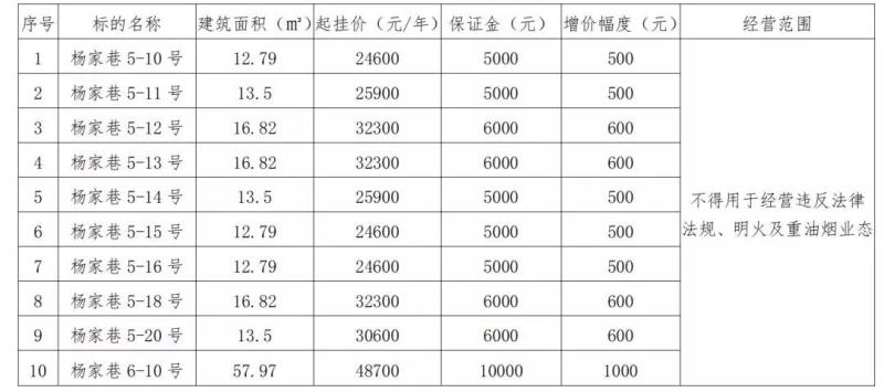 楊家巷部分房地產(chǎn)公開掛牌招租公告
