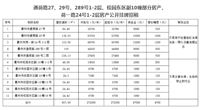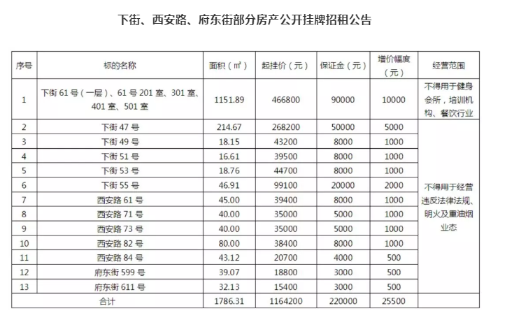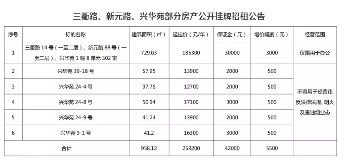 2.以上標的租賃期限均為5年,上述標的首年租金按成交價,從第二年起在上年租金基礎(chǔ)上遞增3%。