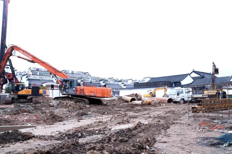 今天,在衢州古城雙修十大項目之一水亭門歷史文化街區(qū)二期補白新建工程——皂木巷片區(qū)新建與修繕工程工地現(xiàn)場,30余名工人正在緊張施工作業(yè),挖掘機轟鳴作響。