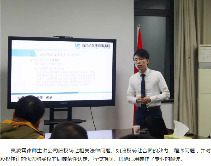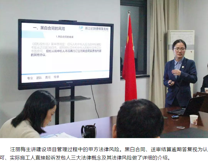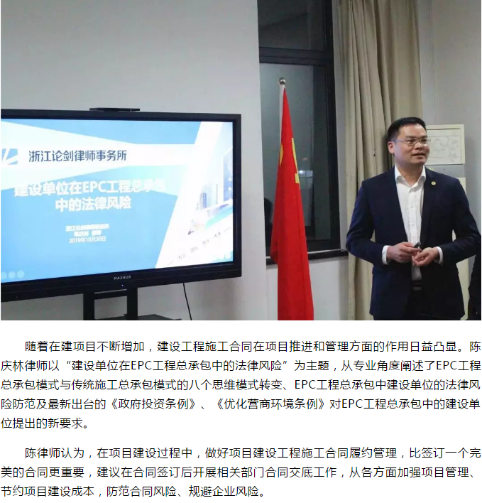 為進一步深化風險把控意識,提升風險管理能力,最大程度維護集團合法權益,10月30日晚,集團特邀法律顧問浙江論劍律師事務所陳慶林律師團隊,開展普法宣傳學習活動。集團黨委書記、董事長、總經(jīng)理姜忠軍,副總經(jīng)理王堅威聆聽講座。