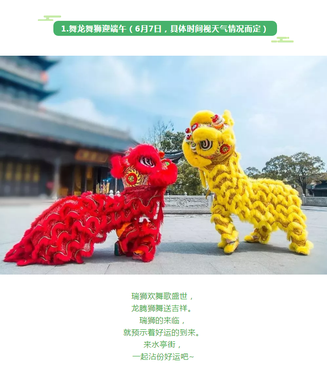 1.舞龍舞獅迎端午(6月7日,具體時間視天氣情況而定)