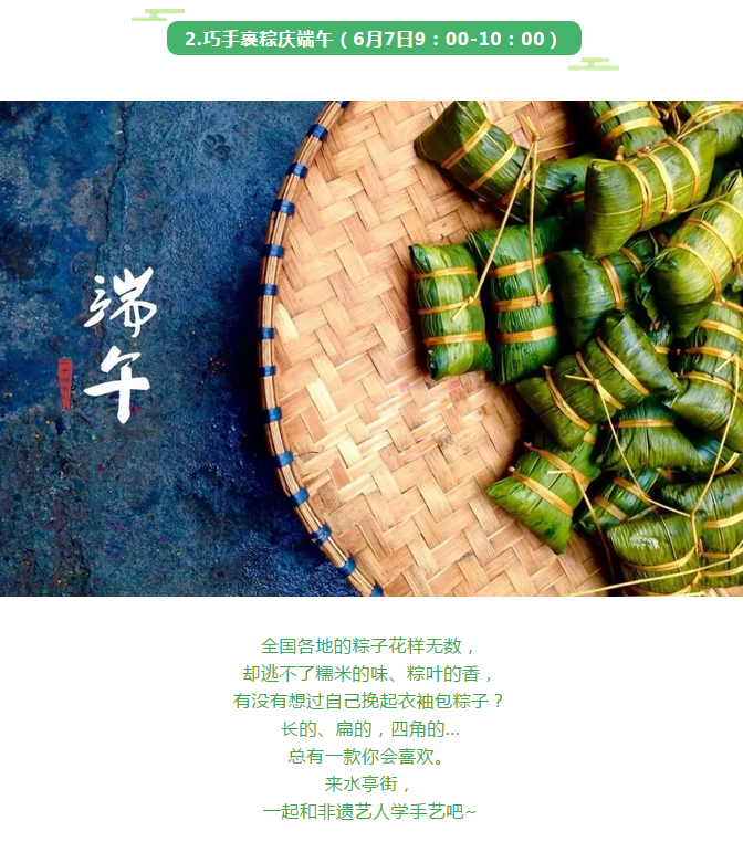 端午節(jié)即將來臨,為進一步集聚水亭門街區(qū)人氣,提升街區(qū)知名度影響力,打造名副其實的“網(wǎng)紅街”、“有禮街”,市城投集團為市民準備了“粽香水亭,濃情端午"主題系列活動,目前活動各項籌備工作已經(jīng)基本就緒,竭誠歡迎集團員工參與其中、獻計出力。