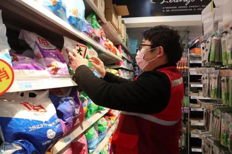 下午,黨員樓棟長(zhǎng)黃吉和張鵬在專職網(wǎng)格員余晶的陪同下,前往超市為社區(qū)轄區(qū)內(nèi)居家隔離的住戶精心挑選生活必須物品。