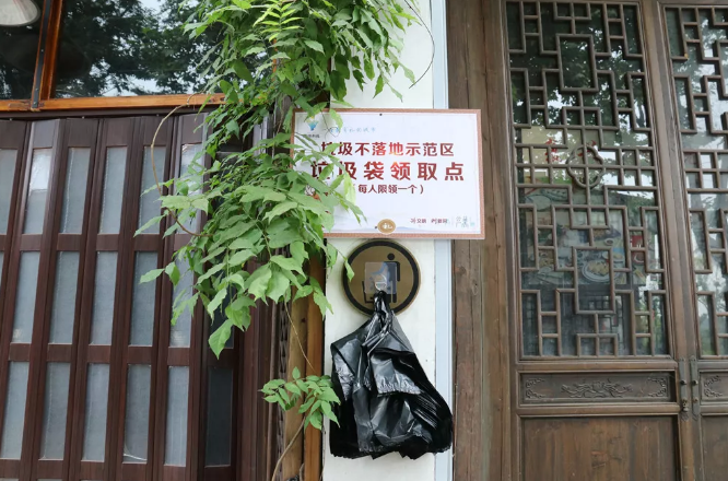 除了自帶垃垃圾袋外,游客也可在水亭街入口崗亭、邵永豐東側(cè)墻壁,免費領(lǐng)取垃圾袋。