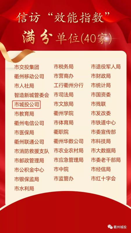 城投紅榜 | 集團獲評第二季度信訪“效能指數(shù)”滿分單位