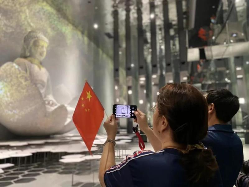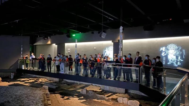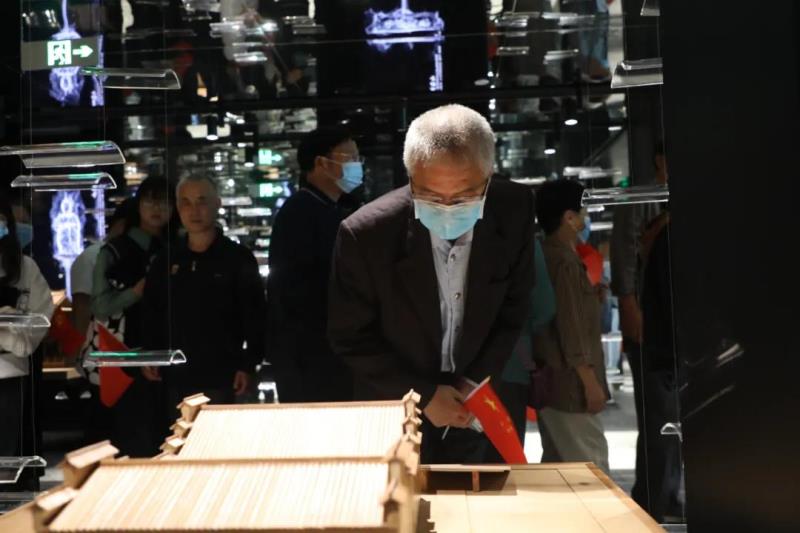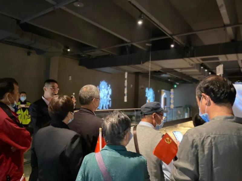 走進(jìn)藝術(shù)館內(nèi),老人們跟隨講解員首先來到了地宮展區(qū),近距離觀看了天王塔遺址,在動畫和光影的展示下,老人們對眼前的景象連連稱贊,并時不時地拍照記錄。