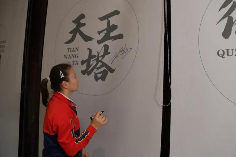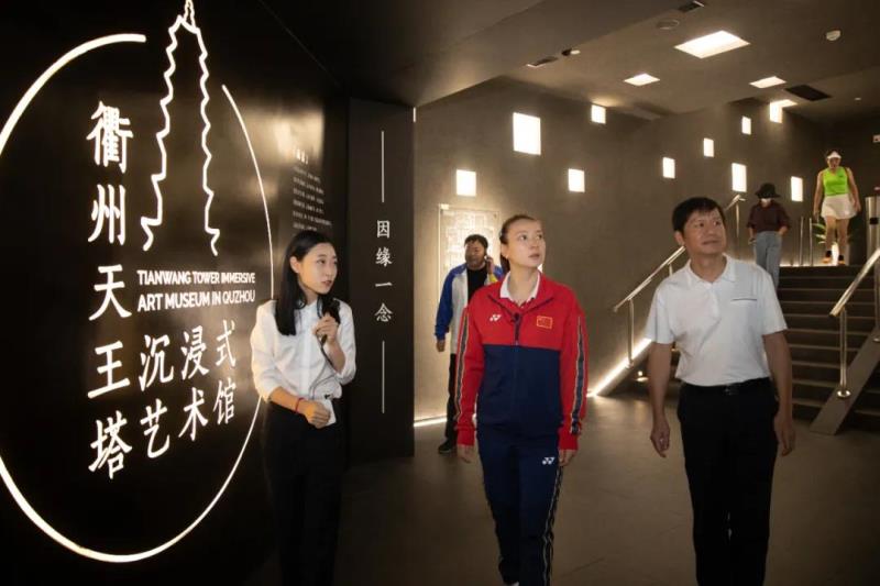 黃雅瓊對(duì)天王塔沉浸式藝術(shù)館的建造發(fā)出了深深的贊嘆,為衢州有讓人這么驚艷的地方而驕傲!在天王塔游客沉浸式藝術(shù)館服務(wù)中心,拍照打卡并簽名留念。