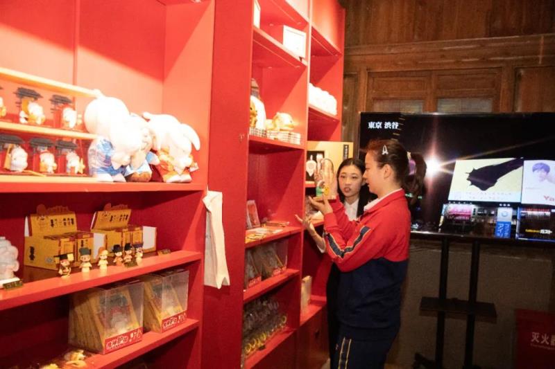展柜上,布置滿著快樂(lè)小鹿吉祥物和南孔爺爺衢州城市卡通形象。小到書(shū)簽、靠枕,大到城市宣傳圖,都滲透著濃厚的傳統(tǒng)文化氣息。